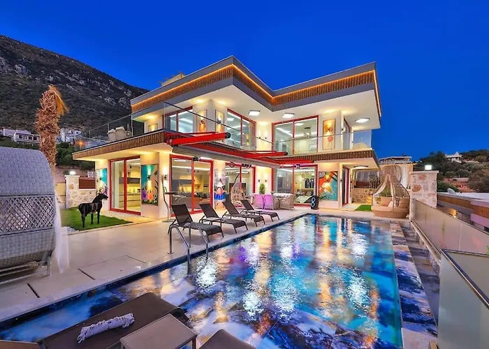 Located 9 minutes' stroll from the Small Hidayet koyu Rock Beach, the 3-bedroom Villa Red Palm boasts an outdoor pool, a hot tub for a relaxing experience. Offering Wi-Fi, the property is located around 10 minutes' drive from the friendly Akcagerme plaji Beach.